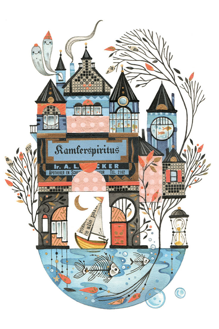A personal project combining illustration, collage and my growing collection of original paper ephemera (tickets, vintage lables, matchboxes and more.)
