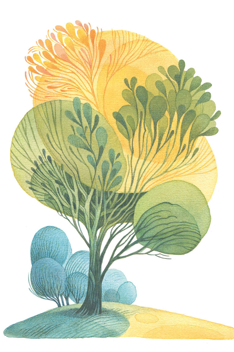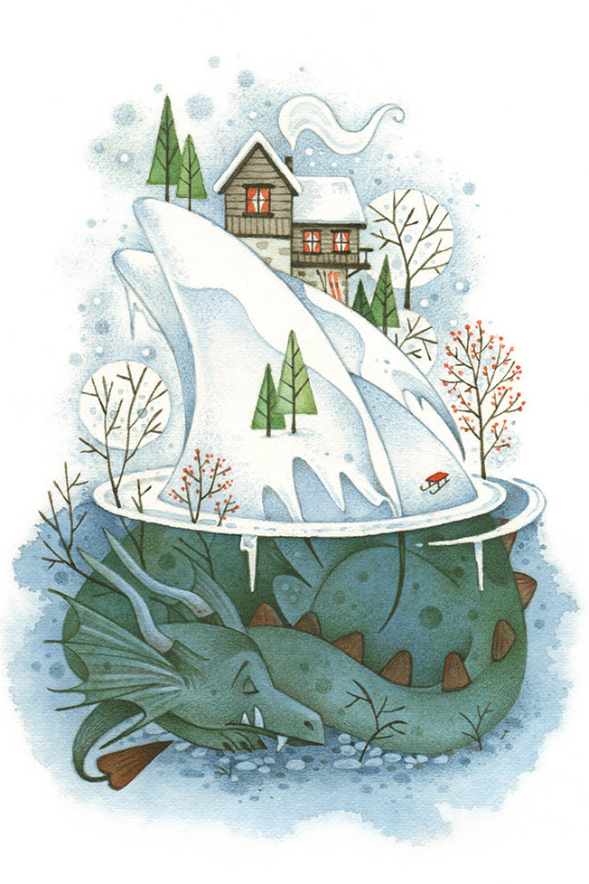 Exploring new paths keeps my interest for illustration alive. Walking into a snowy forest, I found a fox and a deer. Painted with watercolors on a base of dry point etching using tetrapak plates.