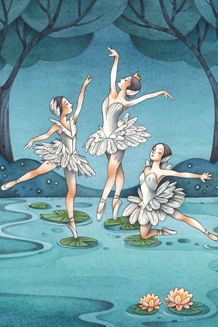 A selection of illustrations for Swan Lake published in France by Editions Auzou.