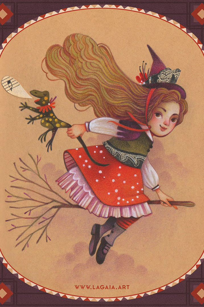 Hazel and her cat were a promotional card proving that black and green aren't the only colors witches can wear!